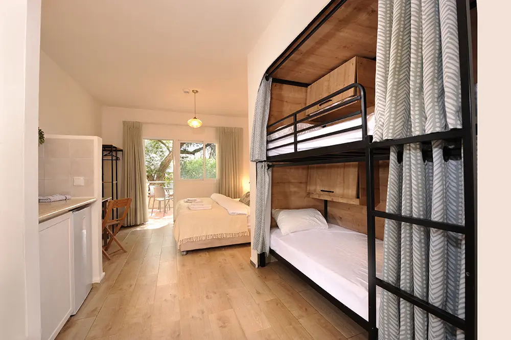 בכפר הנופש אלמוג 81 חדרי אירוח, מתאימים לכל סוג של חופשה. במתחם אנו מציעים מטבח משותף אשר תוכלו לבשל בו. חדרי אירוח זוגיים וחדרים משפחתיים.